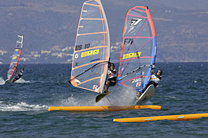Самая первая гонка оказалась и самой нервной. Группа спортсменов Робби Свифт, Джулиен Табул и Ремко де Виирд совершили фальшстарт, из-за чего гонка была немедленно остановлена, и трое вышеозначенных серфера были дисквалифицированы и судьи объявили перезаезд. В этой группе из оставшихся в живых пяти человек победил Грег Олевей. Он же и еще трое участников: Марьяно Ештивил, Джонас Себалос и Хосе Пинана получили возможность перейти в следующий круг соревнований.В этот день большинство спортсменов использовали паруса площадью 6-7 метров и доски более 100 литров. Все действо на воде больше походило на прощупывание спортсменами новой и неизвестной акватории.