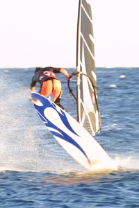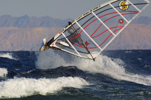 на Гавайи, то никогда не узнаешь о настоящем виндсерфинге. Конечно, если будет возможность, на Мауи стоит побывать. Но что делать тем, для кого все вышеописанное является непреодолимым барьером!? А делать есть что! Можно, и даже нужно, вкусить настоящего виндсерфинга, и все это, казалось бы, в избитом всеми Египте. Из прошлогоднего и первого путешествия в Дахаб, я привез справедливое мнение, что хуже места для виндсерфинга на планете отыскать сложно. Тогда, впрочем, как и в этот раз, мы остановились в отеле, стоящем в лагуне. Рванный с берега ветер, закрываемый многочисленными отелями, гладкая как зеркало вода, и вожделенная волна в километре от берега, добраться до которой на 70-ти литровой доске с маленьким парусом, даже при сильном ветре, не так уж просто. И все же если вам удается пройти всю эту безветренную зону, оказавшись в море, никогда не покидает вопрос, что будет, если ветер скиснет? Опыт подсказывает, что к берегу выплывешь километров пятьдесят ниже по ветру, в районе Шарм-эль-шейха. И все же ты катаешься, рискуя при этом не меньше, чем на Джоуз. И вот, накатавшись, принимаешь решение возвращаться. Начинается самая тяжелая часть твоего