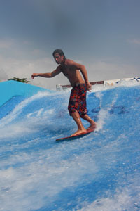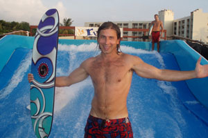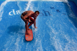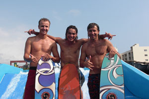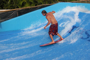 Flowride - Иллюзия Волны!Что такое Flowrider или flowsurf? Уверен, что большинство из вас не догадывается о чем пойдет речь. Впервые я услышал об этой чудо-волне от Джейсона Приора - райдера знаменитой команды Quatro, лет этак пять назад. С красноречием блестящего рассказчика он с упоением описывал свои впечатления о катании на волне до четырех метров высотою, которая никогда не заканчивается. Увидеть мечту любого серфера своими глазами мне удалось лишь в недавней поездке на Гавайи, и не просто взглянуть на нее, а обкатать эту волну и прочувствовать ее неугасимую энергию. Свою летопись flowride начала в 1987 году, когда американский серфер Том Lochtefeld впервые попытался сгенерировать искусственную волну при помощи двух душевых распылителей, восьми турбин от джакузи и пяти помп в одну лошадиную силу каждая. Ему удалось заставить воду подниматься вверх по пластиковым листам. В 1988 году Том получил патент за номером 286974 на: «A wave-forming generator for generating inclined surface on a contained body of water». Это было началом эпохи Flowrider. Уже в 1991 году Том Lochtefeld построил свою первую серьезную волну в штате Техас. Я бы сразу оговорился, что скорее это все же не волна, а иллюзия волны, нагоняемая на определенный рельеф мощнейшим гидравлическим потоком. И все же, это почти достоверная копия настоящей волны с мега мощным и небезопасным течением воды от низа вверх. Высота волны изменятся в зависимости от усиления потока воды, а структура волны и места ее обрушения создаются дизайном платформы, по которой поднимается поток. Проще всего, чтоб понять как выглядит Flowrider, надо представить себе quarter-pipe в скейтпарке, по которому нагоняется поток воды объемом 20 000 литров в день со скоростью 50 км/час, глубиною не более 8 см. Первыми кто смог удержаться лежа на волне построенной в Техасе в 91-м стали bodyboarders Mike Stewart, Pad Caldwell, Jay Reale и Brian Press. Оседлать эту волну стоя удалось лишь пять лет спустя. Том Lochtefeld пригласил в Техас величайших райдеров: скейтбордера Tony Hawk, серфера Kelly Slater и сноубордера Terje Haakonsen. В течении трех дней они экспериментировали с формой волны, дизайном конструкции дорабатывая ее до совершенства. Спустя несколько лет была создана волна пригодная для катания стоя на flowboаrds. И все же главным моментом признания Flowrider стал звонок из Швейцарии от компании Swatch. Суть предложения была проста: можете ли вы сделать транспортабельную волну от трех метров и выше. Это была осень 1998 года. Так началось признание в Европе, а затем и во всем мире. Суть проекта была в том, чтобы сделать что-то подобное Big Air в сноуборде. Через ощущение праздника показать людям доступность серфинга. Фантастическое шоу с музыкальным, лазерным и световым представлением не оставляло равнодушным никого, кто приходил посмотреть на звезд мировой величины рассекающих огромную волну и не где-нибудь на Гавайях, а в самом центре Европы. Первым европейскими городами, куда пришла Волна стали: Мюнхен, Флоренция, Вена. Далее волна двинулась покорять планету: Дурбан в ЮАР, Лонг Бич и Сан Диего в США, Сидней, Ганновер, Манила и многие другие города мира увидели самые мощные surfparty столетия. Келли Слейтер, Роб Мачадо, Терье Хаконсен, Брайн Талма, Джейсон Приор, Тони Хоук, Раш Рэндл, Шон Уайт, Крис Миллер и многие другие с радостью принимали предложение организаторов на участие в мировом туре flowride. Бюджет каждого этапа составлял более 1.5 миллионов долларов, что позвол