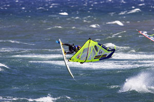 The 2005 Gran Canaria PWA Grand Slam. День Второй Второй день соревнований начался с продолжения вчерашнего недоконченного single elimination по wave. Ветер дул на паруса размером 4.0, в волны достигали высота в два метра. Начался седьмой заезд первого круга, здесь, без особых усилий, в 1\16 вышли Vidar Jensen и Ricardo Campello. В восьмом же зазеде вышли John Skye и Kevin Wolff, в девятом – Josh Angulo и Huart. И вот опять, неожиданно, волны ушли и соревнования пришлось отменить! Но нам повезло, что гонки проводятся не только в дисциплине wave, но и во freestyle. Начался freestyle. Заезды начались сразу с 1\16 финала, а не как всегда с 1\32, так как не набралось столько народу. В первом раунде John Skye обошел немецкого про-райдера Andre Paskowski. Вот другие гонщики, которые вышли в 1\8 финала: Remko de Weerd, Robby Swift, Thomas Traversa, Taty Frans, Victor Fernandez, Colin Sifferlen, Frank Diaz, Kauli Seadi, Anthony Ruenes, Tonky Frans, Jose Estredo, Douglas Diaz, Diony Guadagnino, Kevin Mevissen, Antxon Otaegui и Ricardo Campello.