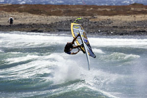 The 2005 Gran Canaria PWA Grand Slam. День Третий Наступил день третий. Начался он с продолжения wave single elimination, который так и не смогли закончить в течение предыдущих двух дней. В последних двух заездах первого круга Peter Volwater, Yann Sorlut, John Skye, Andy Wolff, Xavier Huart, Scott McKercher, Josh Angeulo и Matt Pearch победили без особых проблем у остальных восьми соперников. Первый заезд второго круга начался интересной битвой между Kauli Seadi и Levi Siver, Victor Fernandez и Regis Bouron. Siver был на высоте в этот день, но такого гонщика как Seadi ему не обогнать. Kauli сделал высокий и красивый one hand back loop и taka на волне. Fernandez'у помог его опыт катания на волне, он сделал два goiter, и taka и этим самым вышел в следующий круг. Во втором заезде Robby Swift сделал хорошо контролируемый double forward, обогнав по очкам Julien Taboulet, которому совсем не много не хватило до Robby. Легенда виндсерфинга Bjorn Dunckerbeck победил у победителя прошлого этапа на Гинчо Matt Pritcharf.