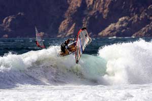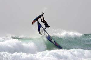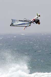 2005 Guincho Estoril PWA World Cup. День Последний Финальный день соревнований начался продолжением double elimintaion, который начался вчера вечером. B вот начались два последних заезда второго круга. В первом Andy Wolff очистил себе путь в следующий круг, убрав с дороги Leo Ray. В этом же заезде марокканский гонщик Boujamaa Guilloul обогнал Marcos Perez. Второй заезд начинался и отменялся целых три раза из-за странного порывистого ветра. Но все-таки этот заезд был проведен и в следующий круг вышли Kai Katchadorian и Cyril Moussilmani. В третьем круге не было ничего примечательного, но все же: в первом заезде Xavier Huart и Klaas Voget обошли других двух участников Jonas Ceballos и John Hibbard. Во втором заезде Yannick Anton прошел в следующий круг, обогнав по очкам Yann Sorlut, Nik Baker победил у Matt Pearch, делая прекрасный tweaked table top.Thomas Traversa и Greg Allaway обошли Vidar Jensen и Peter Volwater. В следующем раунде победили Andy Wolff и Cyril Moussilmani. В следующем круге самые сильные гонщики single elimination уже ждали сегодняшних победителей. Xavier Huart удивил всех сюрпризом дня, убрав с дистанции Jason Polakow. Klaas Voget не смог сделать так же и проиграл уже «старому» профессионалу Bjorn Dunckerbeck. Nik Baker со своим великолепным waveriding и высокими push loop без особых проблем расправился с Francisco Porcella и вышел в следующий круг. ![]() Сделав высоченный doubler forward loop и красивый push loop, Diony Guadagninio обошел Vidar Jensen. Даже этих двух трюков ему хватило со скудным репертуаром Jensen'а. В этому же заезде Thomas Traversa не смог обойти Kevin Pritchard. Kevin сделал поразительный table top и backside aerial, потом поймал еще пару волн и закончил все goiter'ом. Немного позже Josh Angulo перекрыл путь к подиуму известному гонщику Cyril Moussilmani. Levi Siver поразил судей и зрителей высокими back loop, table top, поймал немало больших волн, обогнав в заезде Andy Wolff. И вот четвертьфинал. В первом заезде уже известная битва «молодой vs. старый». Julien Taboulet соревновался с Kevin Pritchard, а Victor Fernandez боролся с Josh Angulo. В первой половине заезда, Taboulet сделал высокий forward loop, Kevin Pritchard на этой же волне сделал back loop, но, правда, приземлился не очень хорошо. И Pritchard, и Taboulet сделали чистый table top. Потом Taboulet cделал красивый backside air, а Pritchard сделал forward loop. Еще перед концом заезда было понятно, что по очкам в следующий круг, то есть в полуфинал выйдет Kevin Pritchard.Во второй половине заезда гонялись, как я уже говорил Victor Fernandez и победитель Hawaii Pro Josh Angulo. Fernandez начался заезд с pushloop, потом он сделал forward loop one handed table top. Josh Angulo ответил ему, сделав table top и на следующей в back loop, этого ему не хватило, чтобы набрать большее количество очков, чем у Victor Fernandez. А в waveriding больше повезло Josh Angulo. На волне он сделал frontside 360 и красивый frontside aerial, дополнив репертуар forward loop'ом. Fernandez же сделал только несколько cut lip и one handed aerial, ему этого не хватило, чтоб побить Angulo. Как известно, wave – это в основном waveriding, поэтому предпочтение отдали Angulo и он вышел в полуфинал.