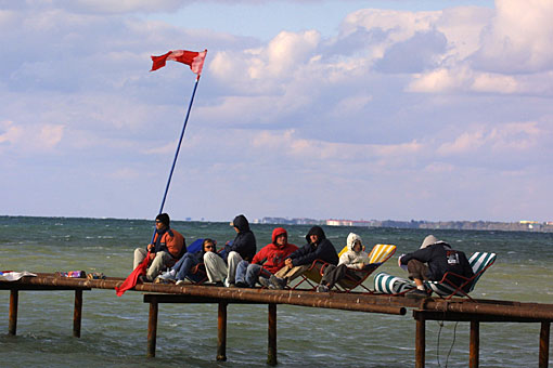 Судьи следят за финальным заездом первой серии.