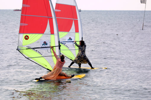 Команда "Виа гра" едут на шпагате.