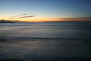 начала рабочего дня:<Будильник, как бешеный вопит, время 5 утра, за окном темно и завывает ветер. Ужасно хочется закрыть глаза еще на немного. Повторная истерика будильника вытаскивает из дремной мглы. Встаю на автомате, холодно, кожа моментально покрывается пупурышками. Выхожу из дома, на небе луна и все вокруг покрыто инеем, под ногами хрустит лед. Иду к машине с замерзшими стеклами. Сегодня обещали волнение 3-5 метров: надо взять доску подлиннее. В багажник летят 5 мм гидрик, бутсы, перчатки и капюшон. Город еще не проснулся, мигают желтым светофоры, неизвестно откуда взявшиеся редкие прохожие и разносчики газет на велосипедах кутаются в свои одежки, холодно. Печка в машине молотит на полную, немного развезло и ужасно хочется спать. Главное не заснуть по дороге. Подъезжаю к морю. Бетонное заграждение не дает увидеть воду, но темно-серое небо и бегущие на восток облака пахнут серьезными волнами. Заезжаю на парковку - о, да! Водяные массы стального