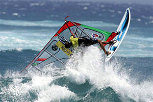 PWA Lanzarote Freestyle and Super X Grand Slam. День первый. Порывы ветра до 20 м\с и волны высотой в 4 метра открыли этап чемпионата мира PWA на Канарском острове Lanzarote. После 10 часов утра участники соревнований вышли в океан, чтобы побиться за первые места на этом этапе. К полудню, после отборочных серий, количество участников уменьшилось до 16 человек, которые показывали высочайший уровень катания, чтобы пробиться в финал. Первыми встретились гиганты виндсерфинга Antoine Albeau и Victor Fernandez. Victor делал различные трюки, крутил высокие front loops, switch stance и clew first трюки. Antoine Albeau очень любит такие условия для погоды, поэтому он выложился на все сто.