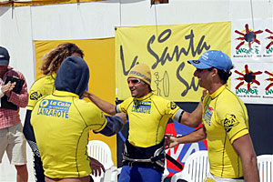 В полуфинале была настоящая борьба между лучшими гонщиками чемпионата - Lang против Guadagnino и Seadi против Campello. Seadi катался в непосредственной близости от судей, пытаясь тем самым произвести большее впечатление на них. Campello не смог чисто завершить пару своих трюков, позволив тем самым Seadi выйти в финал. Во втором полуфинале Guadagnino дела высокие arial tricks, красивые ponchs и хорошо контролируемые switch stance spocks. Конечно, он обогнал Lang и вышел в финал. Campello и Lang проиграли и сразились в лузер-финале.После небольшого перерыва Guadagnino и Sead вышли в океан. После шестиминутной гонки титанов современного виндсерфинга, в которой каждый гонщик выложился на все 100%, показав все самое экстремальное в своем катании, судьи взяли тайм-аут, и удалились на совещание, заставив финалистов еще немного поволноваться. И вот, наконец вердикт объявлен. По оценкам судей Seadi был лучше и стал первым, сместив на второй место Guadagnino. В лузер-финале Campello стал треьим, а Lang четвертым. Так закончился первый день этапа чемпионата мира. Прогнозы на следующий день сообщают, что ветер будет хороший. Следите за развитием событий на www.onwave.ru Подготовил: Сеня Шульгин Фото: PWA |