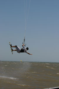 Вообще, то что мы поехали такой тинейджерской компанией придало поездке непривычный оттенок братства. Мы как будто были прорайдерами какого-то бренда, жили и тусили такой веселой расслабленной раздолбайской жизнью. Это также способствовало успехам в катании, учиться и райдить в компании всегда интересней, а главное продуктивней. Сеня оттачивал вулканы, делал попытки на бэк луп, Андрюха и Данила мочили разные хай джампы с гребами, делали джайбы и дак джайбы, я учился делать кайтлупы на трапеции, делал амплитудные рейли с волн, пробовал разные простые вращения. Так как ветер был очень сильный, чаще около 20м/с, и катался я на кайте 7м, то и трюки выходили зрелищные, просто из-за нереального power, хотя это и ограничивало меня в определенном смысле - к примеру, я не мог учиться делать unhooked трюки, которые сейчас наиболее ценятся на контестах. Часто наше катание подстегивалось, катализировалось появлением Севы с фотоаппаратурой. Катаясь на камеру, всегда хочется пробовать что-то новое - даже если трюк не выйдет, то фотография останется.