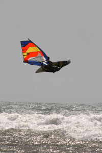 В непосредственной близости от Эссуэйры, где мы останавливаемся в роскошных апартаментах, есть три пляжа, где можно кататься. Один в самой Эссуэйре, где Федор Артамонов впервые взял в руки парус и теперь, похоже, не расстанется с ним никогда. Другой пляж у деревушки Мулей и облюбованный нами пляж Сиди Каоки - фантастически красивый, бесконечный по протяженности пляж, в 30 километрах к югу от города. 10 километров бесконечных волн!Мощный и прохладный ветер с Атлантики встретил нас с первого дня и не перестает удивлять нас своей силой и сегодня. Казалось, уже можно было бы привыкнуть за несколько лет к ветру силой 25 м/с, но оказывается это не возможно. Ребята значительно окрепли за прошедший год, и теперь паруса размером 3.5 метра не пугают их своими устрашающими размерами. Вместе мы выходим, отслеживая прилив, когда поднимаются наиболее сильные волн, и вместе возвращаемся спустя пару часов. Прогресс у ребят не заставил себя ждать. Сеня Шульгин за несколько дней настолько прикатался к столь не простым условиям, что начал осваивать Back Loop и уже сделал несколько весьма удачных попыток Cheese Roll. Данила Валяев дает в небо и срезает верхушки волн, и не удивлюсь, если по возвращению из Марокко в его арсенале будет Front loop.