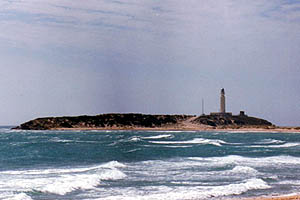 ТАРИФА - КАНЬОС ДЕ МЕККАВ Тарифе я провел меньше недели. Передали прогноз, из которого следовало, что задует "леванте" - ветер со Средиземного моря: сила его от 20м/с и выше, что требует паруса никак не больше чем 3,5 м., и которого, кстати, у меня вообще нет, но утро вечера мудренее, авось, завтра ветер утихнет и будет реально покататься хотя бы на "четверке". Наутро разбудил шум деревьев и грохот ставень. Наскоро позавтракав, мчусь на берег пляжа Лас Дюнас (Las Dunas), что в семи километрах от города. Насколько помню, там самые хорошие условия при таком направлении ветра. Проезжая по улицам города, вдоль серфовых магазинов Tarifa Pirates, High Wind Area, 100% Fun, замечаю знакомые лица тарифской "кислоты" и множество народа, слоняющегося по городу. Такого количества праздно шатающихся я здесь раньше не видывал, хотя август – период отпусков. Впрочем, какие у серферов могут быть отпуска? Если серьезно занялся виндсерфингом, о работе лучше забыть - не возможно сидеть в офисе, когда за окном ветер ломает деревья. Что я и сделал в 1993 году: забыв о работе, занялся виндсерфингом. И вот уже пятый раз на Тарифе – удивительном месте, расположенном на самой южной точке Европы, с потрясающим видом на Африку, где пролив Гибралтар шириною всего лишь 26 километров. Отсюда, стоя на бесконечном песчаном пляже маленького испанского городка, можно неотрывно любоваться величием другого континента. ![]() Подъезжаю к Лас Дюнас. Выхожу на берег. На воде - ни души. "Странно, почему никто не катается?" - задаю себе вопрос, ведь ветра более чем достаточно. На берегу уныло сидят несколько человек с вооруженными парусами, в ожидании... нет, не ветра, а стихания этого самого ураганного "Леванте". К полудню двое все же решаются выйти в океан. Паруса "тройки". Вдоволь насмотревшись на полное бессилие тех двоих перед силами природы, я решил воздержаться от катания. Получается абсурд: ветра нет – не катаешься, ветер есть – тоже не катаешься. День прошел бесцельно. Ждать смысла нет. На завтра решаю покинуть Тарифу и податься в Каньос де Мекка (Cannos de Mecca), что в 60-ти километрах на север. В летние месяцы, когда силен "леванте", волны там, говорят достигают 3 метров – вполне достаточно, чтобы свернуть себе шею. Утром следующего дня, увязав оборудование, я выехал в направлении Кадиса. Горы, пастбища, оливковые рощи. По дорогам Андалусии спешить не хочется. Едешь себе 90км/ч, любуешься окрестностями и деревушками, уютно спрятавшимися в горах и ущельях. После часа езды по живописной, петляющей дороге, я прибыл в Каньос – место о котором, так много слышал Замечаю указатель на Каньос - еще пять километров - и я попадаю в настоящую Мекку. Ощущение, что серферы со всей Испании съехались на этот крошечный пляж. По обочинам машин триста, на воде не менее 150 парусов. Ветер хоть и сильный, но все же не на "тройку".