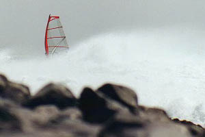 А если упал? Это же может привести к страшным последствиям – поломке матчасти. Или, что хуже, можно утонуть...Волны на Пунто Прета идеальны для катания – огромные, ровные, гладкие, длинные, ветер с берега. Когда катаешься на таких больших волнах, то надо быть готовым к тому, что тебя рано или поздно захлестнет и выкинет на камни. Ну, если не тебя, так твою доску - точно. Чтобы научиться надо рисковать все время. А уж если захлестнуло, не нужно думать о спасении доски или паруса - надо думать только о себе. Может идти сет из пяти больших волн, под которые следует нырять. Когда находишься в воде надо всегда смотреть на волны - без суеты и паники. Спокойно ждешь волну, видишь, как она надвигается, набираешь много воздуха, и ныряешь, а она над тобой проходит. Затем выныриваешь и смотришь: если волны нет, то сразу отплывай от места, где заламываются волны. Если же идет следующая, делай тоже самое: глубокий вздох и ныряй. Но - непосредственно перед самой волной. Потому что, если нырнешь заранее, тебя вытолкнет в момент обрушивания и уже не будет воздуха; волна будет тащить очень долго, а без воздуха выжить сложно. Есть правда способ как выжить, когда волна все-таки тебя потащила под воду. Надо учитывать, что в рухнувшей волне много пены. И ее (пену) следует глотать, если чувствуешь что кислорода не хватает. В пене есть кислород, он и помогает сохранить жизнь. Затем откашливаешься. Но это - момент уже более приятный. Надо ли волне держать глаза открытыми? Я нырял и с открытыми, и с закрытыми. Если закрываешь глаза, то все равно чувствуешь волну. Если же глаза открыты, то сначала из под воды видишь голубой свет. Затем, в момент, когда над тобой проходит волна, резко темнеет и ты ощущаешь сильное давление на уши. Ведь над тобой несколько тонн воды. Затем вновь резко светлеет, всплываешь и оказываешься в белом - белом океане пены. Вокруг только пена обрушившейся волны. Красотища!