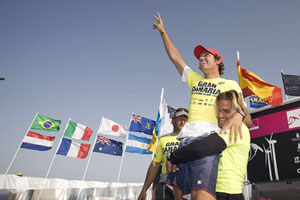 И вот финал. Seadi против Fernandez'а. По силам Fernandez опять превосходил своего соперника. Он лучше держался, делал более красивые трюки и не оставил ни одного сайта для прошлогоднего чемпиона. На следующий день планировалось завершить второй double eliminatiom, но решили провести слалом и женский фристайл. Так что перейдем к девятом дню.День девятый Продолжение седьмого дня началась в 10 часов утра девятого дня соревнований. И опять в финале Seadi и Fernandez. Seadi открыл счет, сделав захватывающий tabletop forward, а затем упал на двойном форварде. Fernandez же сделал несколько aerial'ов на одной волне. Потом за два галса Seadi сделал tabletop forward, double forward и два table top pushloop'а – такое не сможет повторить никто. Fernandez тоже не упускал своего шанса. Ловил большие волны, делал aerial'ы и taka. Seadi же не смог приземлить shaka и выровнился по очкам c Fernandez'ем. Испанец в свою очередь не переставал набирать очки. One hand backloop на высоте 6 метров – это нельзя передать словами. Потом shaka прямо перед волной. Seadi не ожидал такой прыти от Fernandez'а. Поприветствуем нового лидера PWA, который достойно победил во всех 4 финалах. ![]() Результаты: 1 Victor Fernandez Lopez 2 Kauli Seadi 3 Kevin Pritchard 4 Peter Volwater 5 Bjorn Dunkerbeck 6 Vidar Jensen 7 Josh Angulo 7 Nik Baker 9 Jonas Ceballos 9 Orjan Jensen 9 Marcos Perez ФОТО ОТЧЕТПодготовил Сеня ШульгинПо материалам PWA |
