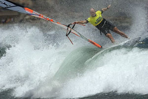 Стоит сказать, что wave был проведен за пять дней. Два single elimination и два double elimination (один double закончили на следующий день). В этот день, по правилам, был дан старт single elimination. Ветер дул, волны достигали 2-3 метров, что позволяет делать амплитудные прыжки и красивые трюки.Райдеры, уставшие после слалома, готовились побороться за призовые места. После собрания установили время старта – пол-одинадцатого. Как обычно, ветер уже показывал свою силу. Первые заезды 1\16 (а также 1\32) показали, насколько захватывает эта дисциплина. Гонщики, не сдерживаясь до следующих раундов, выкладывались на все сто. Двойной форвард Jonas'a Ceballos'а, taka Marcos'a Perez'a, а также нереально красивый, но неудавшийся (вылет катапультой после приземления) one handed double forward Vidar'a Jensen'a. Этот, и еще несколько других трюков, помогли ему побить Campello в первых раундах.Потихоньку дошло до полуфинала, где Dunkerbeck встретился лицом к лицу с Kevin Pritchard'ом. А Seadi гонялся против Fernandez'а. Бйорн делал красивые трюки, backside и frontside 360 и т.п, но Притчард смотрелся поинтереснее, делал разнообразные трюки высокой сложности. Всем было понятно, что он в финале. Во втором полуфинале Seadi по очкам проигрывал Fernandez'у. Хоть он и делал свои фирменные one hand one foot backloop и сумасшедший waveriding, но Fernandez смотрелся лучше: double forward, backside 360, pushloop table top – все это перебивало очки seadi. Таким образом в финале встретились Fernandez и Pritchard.