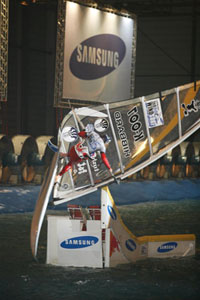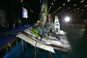 Samsung Mobile Indoor Windsurfing 2006. День Первый.Самый большой в мире бассейн для виндсерфинга(Indoor) в Бельгии, в городе Чент, был буквально освещен мерцанием звезд мировой величины. Лучшие серферы со всей планеты собрались в прошедшие выходные, чтобы разыграть 50 000 Евро в трех дисциплинах: прыжки, фристайл и слалом. В течении первого дня соревнования зрители восхищались скоростью, воздушным трюкам и грациозному балету в исполнении как заслуженных и всеми уважаемых мэтров, так и молодыми, хоть и малоизвестными, но невероятно талантливыми ребятами. И лишь один молодой, самый из них титулованный Рикардо Кампелло, не принял участие в баталиях из травмы ноги, которую он получил накануне, во время тренировок на трамплине. Шоу началось с дисциплины фристайл. Самым ярким открытием дня стал француз Николас Акгазян, который продемонстрировал идеальный one handed switch chachoo 540, который принес ему более 30ти победных очков. Вторым c shove into spock стал голландец Кевин Мевиссен, впервые принявшиq участие в столь значимом мероприятии как Indoor. Его второе место это солидная заявка на то чтоб уже увековечить свое имя в мировом виндсерфинге. Третье место завоевал Марсилио Брауни, который блистал в первый вечер соревнований Samsung Mobile Indoor Windsurfing 2006. Среди женщин доминировала Карин Ягги, которая в сложной борьбе буквально вырвала победу у Ибайи Морены. Третье место досталось Сильвии Алби.