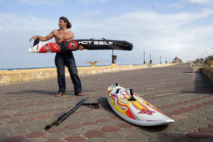 Синайские зарисовки или путешествие с «двумястами блокпостами». Пролог Египет. Дахаб. Не сочтите за нескромность, но это направление у меня лично не вызывает эмоциональный взрыв, наоборот чувство некого «креста» и столь тяжелого, что перспектива тащить его на себе до конца дней моих серфовых, честно говоря пугает. Но во всем можно найти приключение, поэтому, взглянув на карту прогноза ветра в пятницу утром, где узрел суровое зимнее средиземноморье с пугающе большими волнами и сильным ветром, вечером того же дня я уже имел на руках билет. Вылет рано утром. План путешествия, как мне предвиделось, был чрезмерно прост: Дахаб – Александрия – Эль Тур – Дахаб, но на деле все получилось иначе. Египет Дыхание Синайского полуострова ощущаешь сразу же по прилете в аэропорт. Теплый сухой ветер встречает уже на трапе самолета. Правда, в этом году осень выдалась на редкость холодной. В отличие от нормальной температуры 24-26С тепла, столбик термометра в ноябре порой опускался до 18-20С, что считается довольно суровым относительно местного климата. Но зато подобный холод гарантирует сильные ветра. Нам не повезло - к нашему приезду заметно потеплело, это всегда говорит о том, что цикл ветра пойдет на убыль, но к счастью прогноз в Интернете все еще обещал долгожданный ветер. Дахаб Дахаб - в далеком прошлом маленький рыбацкий поселок, ныне большой, но все еще очень стильный туристический городок. Трудно представить, что каких-то 10-15 лет назад здесь стояло лишь несколько лачуг. С каждым годом его облик меняется, и нельзя сказать, что к лучшему. Если, еще каких то пять лет назад, это был облюбованный лишь серферами и нетронутый цивилизацией райский уголок, то сейчас Дахаб, полон праздных, не имеющих никакого отношения к спорту, туристов. Но пока еще, этот город не утратил своего главного достоинства, воистину его умиротворенная энергетика дурманит рассудок любого вновь прибывшего путника. А те, кто задерживается здесь на месяц и более, уже с трудом представляют себе жизнь в мегаполисах, оказываясь в тяжелых кандалах дахабской нирваны. Нам предстояла многодневная поездка на машине по всему Синайскому полуострову в поисках различных мест катания, и быть может открытия новых, доселе неизведанных. Осталось лишь найти машину, и можно отправляться в заманчивое путешествие. Но, к сожалению, пришлось повременить, целый день не удавалось найти автобус, а прогноз от Александрии тем времени, быстро смещался в сторону Эль Ариша, что уже почти на границе с Израилем.В первый вечер я так и не смог найти средство для передвижения за границы Синая. Как только водительская «братия» возглавляемая главным гешефтмахером этого бизнеса Мохаммедом, прознала о столь стоящем деле, сулившем неплохие по их меркам барыши, цена за автобус с водителем, со 100$ долларов в день выросла почти до 200$ и все это при цене на бензин менее 5 рублей за литр. А тот благочестивый, который осмелился предложить нам свои услуги за 100$ в день, внезапно пропал без вести, по всему видимо был закован в цемент и отправлен Мохаммедом в ночной дайв.