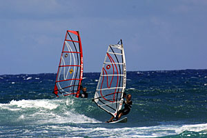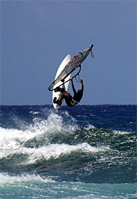 После беспощадного 24 часового перелета через все возможные континенты, с посадками в Париже и Сан-Франциско, уставшие, но не побежденные, мы достигли благословенного острова Мауи. Первые два дня встретили ребят хорошим ветром на паруса 3.5 и 4.0 метра и неплохой для лета, полутораметровой волной на знаменитом пляже Хукипа. Андрей и Семен едва сошли с трапа самолета, поспав не многим пяти часов, вооружили свои любимые разме ры парусов и устремили свои 60-ти литровые доски в направлении обрушивающихся волн. Первые минуты вожделенного катания. В глазах у детей уверенность в себе и огромное желание учиться настоящему виндсерфингу. Данила - новичок в нашей школе - виндсерфингом занимается первый год. На весенние каникулы мы вместе ездили в Египет, где он впервые встал на доску. За две недели каникул Данила освоил азы виндсерфинга. Старт с берега, хождение острым курсом, повороты: все это давалось ему столь легко, что мы решили пригласить его в гавайскую школу виндсерфинга. И мы не ошиблись. За первые два дня Данила продвинулся до старта с берега в ветер 15 метров секунду и глиссирования, пока еще не в петлях и не на трапеции, но, поверьте, дело за малым. Обучение виндсерфингу, как и каждое серьезное дело, требует многочасовой работы и большой отдачи сил. В каждом деле бывает нужно стиснуть волю в кулак и повторять одно и то же сотни раз. Пока не придет успех . Дети же, в основной своей массе, трудиться без оглядки не любят. Он любят играть и предпочитают, по возможности, увиливать от труда и некоторых неприятных, по их мнению, обязанностей. А виндсерфинг и есть именно слишком серьезное занятие, требующее от ученика упорства, терпения, координации, чувства ветра, и физической силы, наконец. Всем известно, что Мауи - место обитания самого большого в мире количества спортсменов-профессионалов. Именно здесь на легендарной Хукипе или замечательной Канахе можно поздороваться с Робби Нейшем, переброситься парой слов с Джейсоном Поляковым и вблизи полюбоваться на разноцветного вытатуированного орла на спине Джейсона Приора. Эти и другие спортсмены всегда были предметом восхищения и уважения. Это всегда был нереально далекий уровень мастерства, дорасти до которого, никогда и не мечталось никому из россиян. Мы могли только смотреть и наслаждаться и еще жалеть, что не родились там.У детей-воспитанников гавайской школы виндсерфинга Севы Шульгина есть прекрасная возможность во время тренировок бок о бок кататься со многими «профиками», пытаться повторять элементы высшего пилотажа, а потом на берегу услышать какой-нибудь дружелюбный комментарий в свой адрес. Гавайские мастера – парни открытые, не брезгующие пожать руку и сказать что-нибудь дельное «любителю». Такое вот «земное» общение с «божественными» людьми, которых многие в мире видели только на видео, служит для детей мощным стимулом и вдохновляет на дальнейшее освоение высот виндсерфинга. текст: Сева Шульгин Фото: Сева Шульгин |