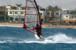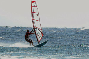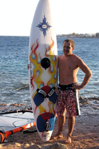 Тест досок Quatro Production 2005. Райдер Олег Груздев Виндсерфингом увлекается 6 лет. «Мое знакомство с парусной доской началось в далеком 1998 году» - рассказывает Олег. «Никогда нельзя ожидать ничего хорошего от родственников, так случилось и в этот раз. Мой братишка, случайно обмолвился, что "… мол, де, встал тут на виндсерфинг…", и вот я с приятелем приезжаю в Строгино. Весна, майские праздники, на улице плюс 20 градусов, вода плюс 10, но об этом я узнал потом… Побродив по бережку и не увидев ни одной парусной доски, мы, совершенно случайно наткнулись на «понтового» такого парнишку, который на наш вопрос "… про виндсерфинг…" охотно согласился преподать нам первый урок. Как водится, урок не был бесплатным, и после получасового отсутствия мы обнаружили на берегу настоящую парусную доску (мустанг и тряпичным парусом), чему, естественно, несказанно обрадовались. Саша Белов (он же Вайт), в свою очередь, несказанно обрадовался ящику пива и килограмму сосисок. Дальше был костер, двухчасовые теоретические занятия, выход на воду в коротком гидрике причем при полном отсутствии ветра и десятиградусной воде. После двухчасового катания на виндсерфинге (полчаса на доске и полтора в воде) я оказался на берегу. Цвет кожи был синим, носа и лица уже зеленоватым. Но благостное настроение Вайта и крепкие напитки обострили только положительные эмоции от продуктивно проведенного времени. Дальше были изнурительные тренировки на матчасти базы РФА (не новички поймут). Покупка первой доски (3-х метровой и 150-ти литровой), катание на единственном парусе 7.0 при ветре в 12 м/с, выход в Cabeso (El Medano, Tenerife) на лодке 120 литров и БЕЗ умения сделать старт с воды, и т.д. и т.п. Греция, Испания, Канары, каталка в конце апреля на Москве реке, т.к. в Строгино еще лед, а ветер ДУЕТ. И совершенно случайный приезд в Египет с катанием в Лагуне, ощущения от которого лучше не описывать. И мне казалось, что больше я туда ни ногой, и не нужны мне гладкие ровные воды, 5-ти звездные отели и назойливые арабы в гостиницах. Однако ж, не зря, говорят "не зарекайся". Дальше я открыл для себя ЛайтХаус. Tест досок Quatro в Дахабе. Спот: Лайтхауз Совершенно случайно удалось попробовать покататься на лодке Quatro Custom Wave 68 L. Во время двухнедельного прибывания в любимом московском дачном месте, именуемом ЛайтХаус (Дахаб Египет) ветра было немного (по Дахабским меркам). Дуло в основном с утра на парус 5.0, к обеду стихало до 5.8, поэтому катался на большой лодке (Quatro Production FreeStyle 95 L) с утра. К обеду сил ни на что уже не хватало, так что, как все нормальные серферы (в условиях постоянного ветра, разумеется), спал на берегу после каталки.Но на 5 дней (прогноз не подвел!) случилось плановое усиление ветра, дуло весь день, и даже ночь, на парус 3,7-4,0. При этом разогнало нешуточную волну, иногда валы доходили высотой до мачты. Все попытки использовать 95-ти литровый пароход закончились уже через час после прихода сильного ветра. В прокате к этому моменту была только лишь Мистраль Шифт 80 л, попробовав которую, я сразу же отнес к категории Мистраль "Шит". И вдруг, Сева Шульгин организовывает тест всех моделей досок Quatro, как Custom, так и Production. Разумеется, я выбрал Quatro Custom Wave 68 L. Наплевав на свои 80 кг веса, я выклянчил "попробовать", но, попробовав, уже не смог вернуться на 95 литров, и катался на этом чуде даже с парусом 5.0. Quatro Custom 68 литров Форма лодки говорит: никакого