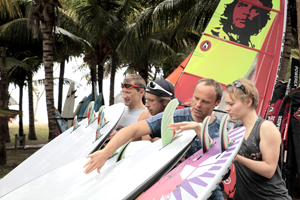 Завершилась очередная тестовая неделя оборудования Hot Sails Maui, Powerex, Quatro, Chinook на острове Маврикий. В этом году ветер не часто радовал тех, кто приехал на Маврикий с желанием обуздать стихию. И по этому, большинство желающих протестировать новые доски и паруса на воде и волне, смогли сделать это лишь на земле. В любом случае возможность увидеть все своими глазами, подержать в руках, оценить все достоинства и недостатки новых моделей, значительно лучше, чем верить картинкам в интернете. В этом году, в связи большой экспансией русскоговорящего населения на остров Маврикий, особой сложности провоза оборудования не случилось, что позволило привезти достаточно парусов и досок всем желающим, кто хотел опробовать все линейки оборудования в течение тестовой недели. Список тестируемого оборудования: 4 Quatro Custom Quad Fin Boards: 80 лтр , 85 лтр , 85 лтр, 90 лтр, 3 Quatro Custom Twin Fin Boards: 75 лтр, 90 лтр, 95 лтр 2 Quatro Custom Single Fin Boards: 85 лтр, 102 лтр. 2 Quatro Production boards: 75 лтр Twin, 140 лтр Freeride. 10 парусов Hot Sails Maui: Линейка Super Freak от 3.5 до 6.3, Fire, Smack, Мачты RDM Powerex 370, 400, 430: 85% carbon 8 гиков Chinook Carbon: 137-185, 150 -200. ![]() Все это составило более 500 кг негабаритного груза, который в течении недели был доступен для любого желающего. В итоге мы смогли дождаться дня, когда волны и ветер позволили нам протестировать оборудование на одной из самых устрашающих волн – One Eye. Можно сказать, что потери оказались значительно меньше чем планировалось. Так как это был период полнолуния, то отливы полностью оголяли риф, а желание кататься пересиливало реальную оценку опасности, и из этого было пробито пару новых досок. К счастью, все оказалось пригодным к ремонту. ![]() Был порван, увы фатально, парус Super Freak 5.0 Чегевара. Но это был Crash off the year, с волны значительно превышающей высоту мачты в самом опасном месте Рифа One Eye – на surfers point, где скорость волны увеличивается вдвое, и волна заворачивается в трубу, обрушиваясь на риф, где глубина воды не более метра. Знаю, что вы начнет зловредничать, мол не выдержал, где же хваленное качество и надежность Hot Sails Maui!? Но если уж Супер Фрик не выдержал подобного испытания, то врятли еще есть паруса на земле, которые бы выжили в подобных условиях. Хотел поблагодарить всех, кто принял участие и помог в организации: Фотографов Анастасию Гусеву, Юлию Сошникову и Алексея Арютова (www.ohrim.ru) За организацию спасения Андрея Сорокина и команду “Vivax” Губернатора острова Маврикия сэра Сеергадонаавала Александра Злобинского Ивана Тюшкевича Евгения Цышкова Алексея Нусинова Александра Касьяненко Вадима Андронова Андрея Филькова Федора Елютина (Копы в Огне) Сергея Мысовского Ольгу Жилинскую «Хуана» «Иисуса» И многих других, кто принял участие в тестах! Мнение всех вас, каким бы оно впоследствии не было, мне очень важно! Спасибо Всем! Смотрите фотоочтет о Mauritius Test week 2011 ! Паруса Hot Sails Maui 2012: !Смотреть! Сева Шульгин |